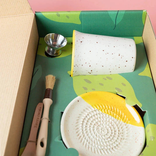 Complete your table with matching handmade ceramics - from elegant oil bottles and salad bowls to charming mugs that perfectly pair with your grater plates.