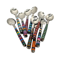 These iconic, colourful Small Berber Spoons are Moroccan teaspoons that feature a slightly different striped resin and metal handle. Handpicked and imported with love from Marrakech, Morocco during one of our many purchasing trips to our favorite country. Not suitable for dishwasher, handwash only. Sold per piece. All spoons are fun multi-colors, random colors will be selected for you.