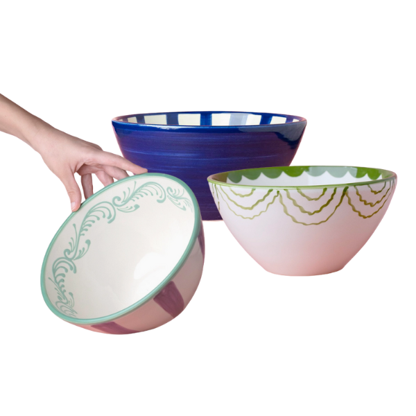 Stijlvol en perfect om te delen: onze saladekom van 1,5 liter is handbeschilderd, een echt pareltje in je keuken. Geschikt voor alles, van salades, fruit tot pasta-avonden - elke kom is een functioneel kunstwerk!