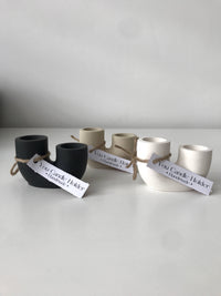 Deze schattige You Duo Kaarsenhouder is een leuk item om je huis mee te decoreren. Het is het perfecte item om 's avonds een warme sfeer te creëren. Deze kaarsenhouder voelt aan als steen, maar is lichter, het bestaat uit een combinatie van reactief mineraalpoeder en acrylhars op waterbasis, waardoor het milieuvriendelijk is. Verkrijgbaar in klein en groot.